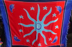 Bali beach sarong, dimensions: 180 cm X 120 cm, smooth, Hand painting sarong, material: Rayon ( class 1) , Color: blue & red motif : Star, month And Sun please request for complete cataloque include....